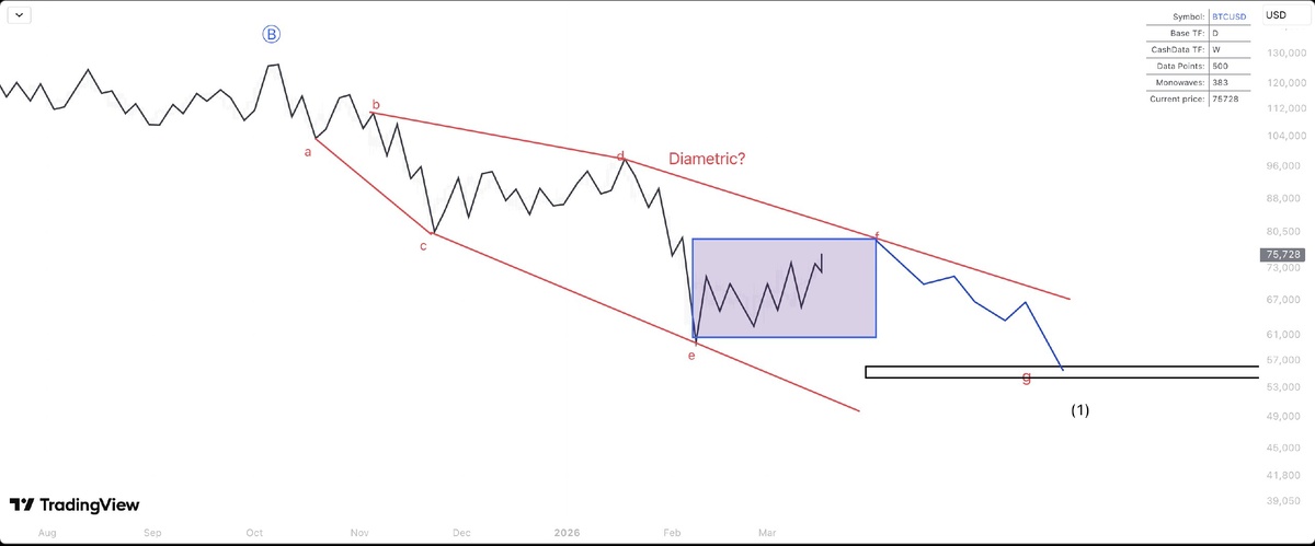 Π±ΠΎΠ»Π΅Π΅ ΠΊΡΡΠΏΠ½ΠΎΠΉ ΠΊΠΎΡΡΠ΅ΠΊΡΠΈΠΈ. ΠΠ½Π°Π»ΠΈΡΠΈΠΊ TheOnePct ΠΏΡΠ΅Π΄ΠΏΠΎΠ»Π°Π³Π°Π΅Ρ, ΡΡΠΎ ΡΡΠΎ ΡΠ°ΡΡΡ "ΠΏΠ»ΠΎΡΠΊΠΎΠΉ ΠΊΠΎΡΡΠ΅ΠΊΡΠΈΠΈ", Π½Π°ΡΠ°Π²ΡΠ΅ΠΉΡΡ Π² 2021 Π³ΠΎΠ΄Ρ, ΠΈ ΠΏΡΠ΅Π΄Π²Π΅ΡΠ°Π΅Ρ Π΄Π°Π»ΡΠ½Π΅ΠΉΡΠ΅Π΅ ΡΠ½ΠΈΠΆΠ΅Π½ΠΈΠ΅, Π²ΠΎΠ·ΠΌΠΎΠΆΠ½ΠΎ, Π½ΠΈΠΆΠ΅ $60,000 Π΄ΠΎ ΡΡΠΎΠ²Π½Ρ $55,000. π ΠΠ»ΡΡΠ΅Π²ΡΠ΅ ΠΌΠΎΠΌΠ΅Π½ΡΡ: - ΠΠΎΡΡΡΠ°Π½ΠΎΠ²Π»Π΅Π½ΠΈΠ΅ Π΄ΠΎ $70,000 ΠΌΠΎΠΆΠ΅Ρ Π±ΡΡΡ Π²ΡΠ΅ΠΌΠ΅Π½Π½ΡΠΌ. - Π€ΠΎΡΠΌΠΈΡΡΠ΅ΡΡΡ "Π΄ΠΈΠ°ΠΌΠ΅ΡΡΠ°Π»ΡΠ½ΡΠΉ ΠΏΠ°ΡΡΠ΅ΡΠ½" Ρ Π²ΠΎΠ»Π½ΠΎΠΉ F, Π²Π΅Π΄ΡΡΠ΅ΠΉ ΠΊ ΡΠ½ΠΈΠΆΠ΅Π½ΠΈΡ Π² Π²ΠΎΠ»Π½Π΅ G. - ΠΡΠΎΠ³Π½ΠΎΠ·ΠΈΡΡΠ΅ΡΡΡ ΠΏΠ°Π΄Π΅Π½ΠΈΠ΅ Π½ΠΈΠΆΠ΅ $60,000 Ρ Π²ΠΎΠ·ΠΌΠΎΠΆΠ½ΡΠΌ Π΄Π½ΠΎΠΌ ΠΎΠΊΠΎΠ»ΠΎ $55,000. β οΈ Π ΠΈΡΠΊΠΈ: Π‘ΡΡΡΠΊΡΡΡΠ½Π°Ρ ΡΠ»Π°Π±ΠΎΡΡΡ Π±ΠΈΡΠΊΠΎΠΈΠ½Π° ΠΌΠΎΠΆΠ΅Ρ ΠΏΡΠΈΠ²Π΅ΡΡΠΈ ΠΊ Π·Π°ΡΡΠΆΠ½ΠΎΠΌΡ "ΠΌΠ΅Π΄Π²Π΅ΠΆΡΠ΅ΠΌΡ" ΡΡΠ½ΠΊΡ. ΠΠΎΡΠΈΠ·ΠΎΠ½Ρ: ΠΊΡΠ°ΡΠΊΠΎ/ΡΡΠ΅Π΄Π½Π΅ΡΡΠΎΡΠ½ΠΎ