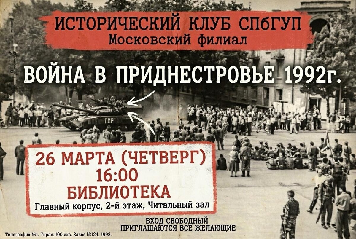 » Друзья, приглашаем вас на крутой поворот в истории! В этот четверг, 26 марта, наш клуб превратится в машину времени и перенесет нас в жаркое лето 1992 года на берега Днестра. Война, о которой не любят говорить в учебниках, но которая изменила судьбы тысяч людей. Огонь, оружие и отчаянная борьба за независимость крошечной республики — все это в докладе нашего коллеги Никиты Зачесова. Разберем предпосылки конфликта, страшные будни городов, оказавшихся на линии фронта, и узнаем, почему Приднестровье до сих пор остается "пороховой бочкой" Европы. 📍 Где: Библиотека СПбГУП (Московский филиал) 🕓 Когда: 26 марта (четверг), 16:00 Ждем всех, кому интересна правда, скрытая за датами! Сайты: msk-gup.ru и msk.gup.ru ВК сообщество: vk.com/inisk Яндекс Дзен: dzen.ru/spbgup ТГ канал: https://dzen.ru/id/6537d0070d3ed760fbd1986c #Зеленоград #Менделеево #СПбГУП #ИИиИТ #Институт #Университет #Химки #Клин #Солнечногорск #ЗелАО #PR #Реклама