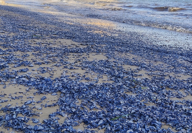 Синие пляжи Каталонии: тысячи «медуз-парусников» захватили побережье