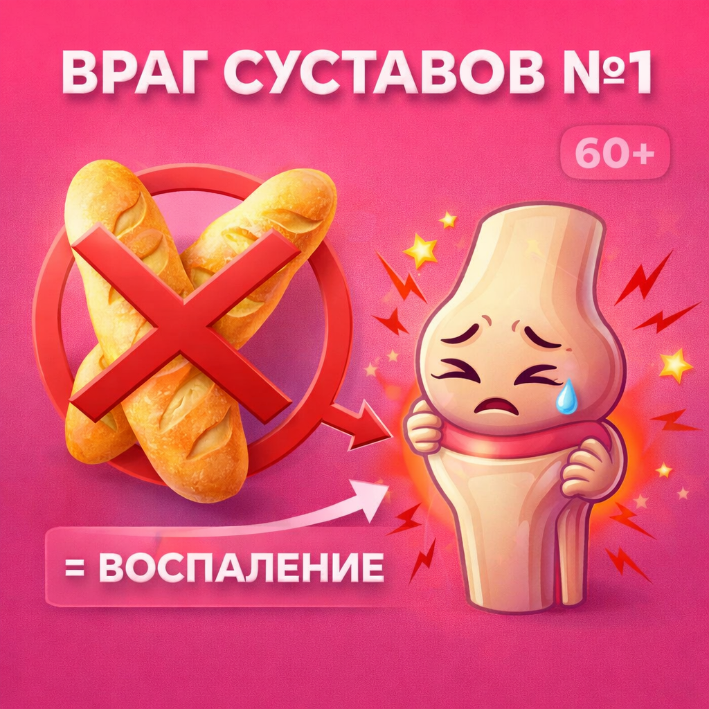 Суставы болели годами — пока врач не запретил один продукт. Через месяц не узнала себя! Моей маме 64. Последние три года она жаловалась на колени. Хруст, боль при ходьбе, по лестнице вообще не могла нормально спускаться. Пила хондропротекторы, мазала всякими гелями — ноль эффекта. А потом она попала к ревматологу Ольге Викторовне. И та задала странный вопрос: «А хлеб какой едите?» Мама растерялась. При чём тут хлеб? Обычный, белый, свежий, каждый день покупаем... «Вот в этом и проблема», — сказала врач. Ольга Викторовна объяснила: после 60 хрящевая ткань восстанавливается медленно. Организму нужны ресурсы — коллаген, глюкозамин, правильное питание. А мы что делаем? Едим продукты, которые разрушают суставы. Белый хлеб — главный враг. Почему? В нём высокий гликемический индекс. Он резко поднимает сахар в крови. А скачки сахара запускают воспаление в организме. И первыми страдают именно суставы — хрящ воспаляется, разрушается, болит. Плюс белая мука — это «пустые калории». Никаких витами