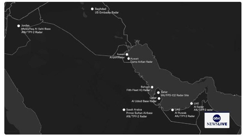 ❗️🗺Не менее 10 радиолокационных станций, развёрнутых на Ближнем Востоке, подверглись атаке, включая дорогостоящие и чувствительные системы