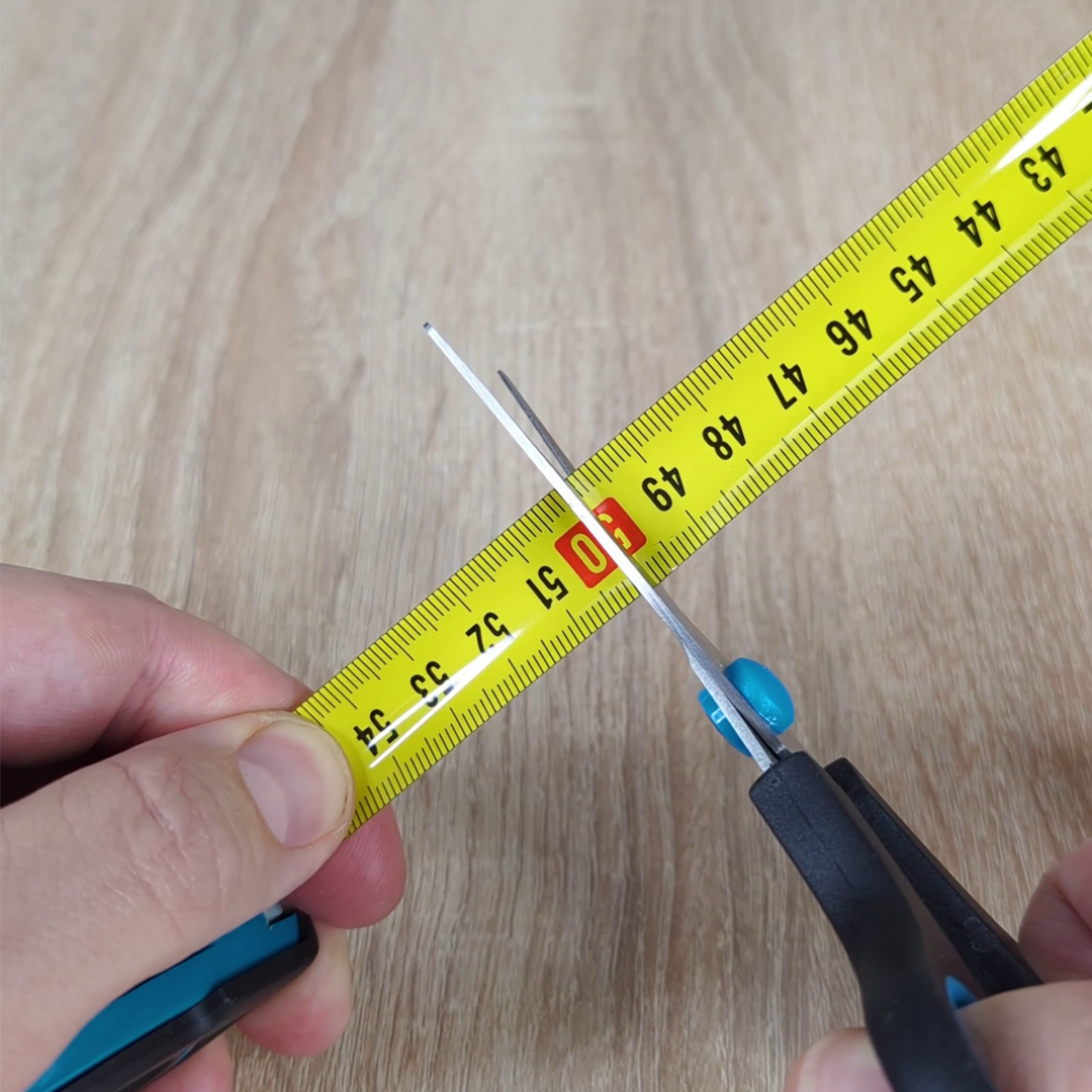 Если вы устали от того, что дверь в туалет или ванную комнату остается открытой, пропуская запахи или сквозняки, не спешите покупать сложный и дорогой дверной доводчик. Эту проблему можно решить буквально за пять минут с помощью обычной строительной рулетки. Получившийся механизм работает плавно и абсолютно бесшумно. Возьмите строительную рулетку и аккуратно вытяните примерно 50 сантиметров металлической ленты. Вам нужно отрезать этот кусок. Для этого используйте прочные ножницы по металлу, так как стальная лента достаточно жесткая. После того как фрагмент отделен, придайте его кончику округлую форму, срезав острые углы. Затем в центре этого закругленного конца проделайте небольшое аккуратное отверстие. Оно нужно для того, чтобы закрепить нить, — острые края металла не должны ее перетирать. Возьмите прочную капроновую нить (она лучше всего выдерживает нагрузку и не растягивается). Проденьте один её конец в подготовленное отверстие на ленте. Чтобы нить надежно зафиксировалась и не выск