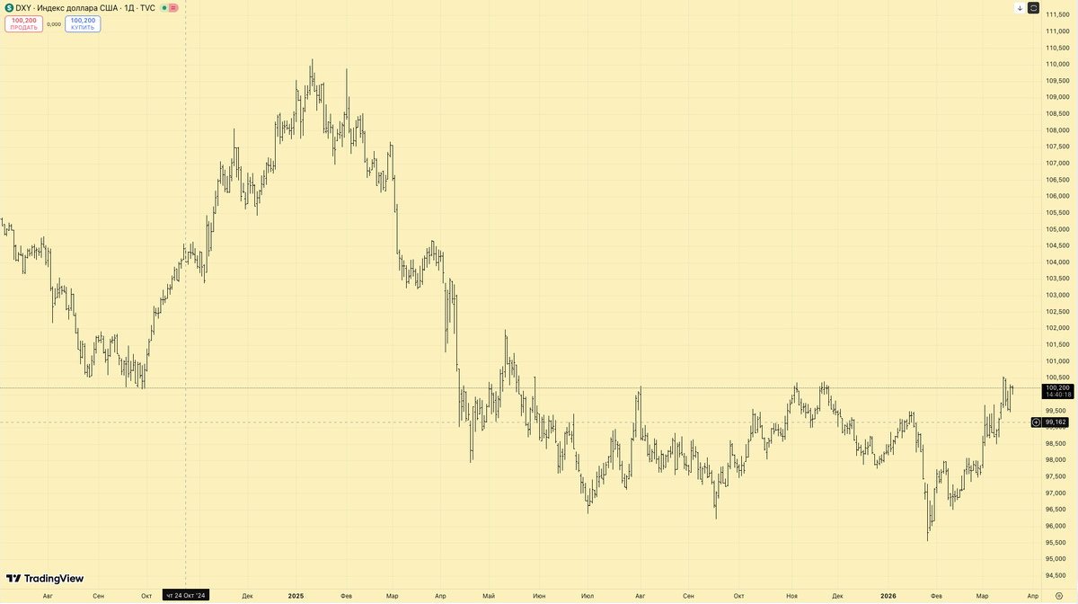 Где смотреть его на графиках? В TradingView самый распространённый символ TVC:DXY. Также ICEUS:DX1! — фьючерс