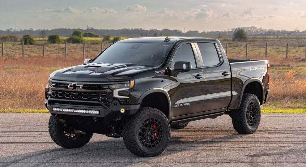 Chevrolet Silverado ZR2 всегда был мощным борцом с бездорожьем. Подвеска с волшебными амортизаторами от Multimatic позволяла ему танцевать на камнях так, как другим пикапам даже не снилось. Но была у этого танцора одна серьёзная проблема – слабоватый мотор. И пока Ford F-150 Raptor R и RAM 1500 TRX играли в лиге тяжёловесов, с показателями под восемьсот сил, заводской ZR2 довольствовался скромными 420 лошадьми. Ситуация выглядела патовой, но тюнеры из Техаса взялись решить проблему и создали Hennessey Goliath 700. Это не просто доведённый до ума пикап, а мощный ответ на вызовы конкурирующих монстров. Инженеры Hennessey провернули старый добрый трюк с мускулами, встроив в штатный 6.2-литровый V8 двухвинтовой нагнетатель. Воздуходувка, в паре с интеркулером и перепрошитыми мозгами, выжала из мотора 700 лошадиных сил и 820 Нм крутящего момента. С такими показателями тяжёлый грузовик выстреливает до сотни всего за 4,2 секунды. Да, он всё ещё немного не дотягивает до 720 сил Raptor R или 77