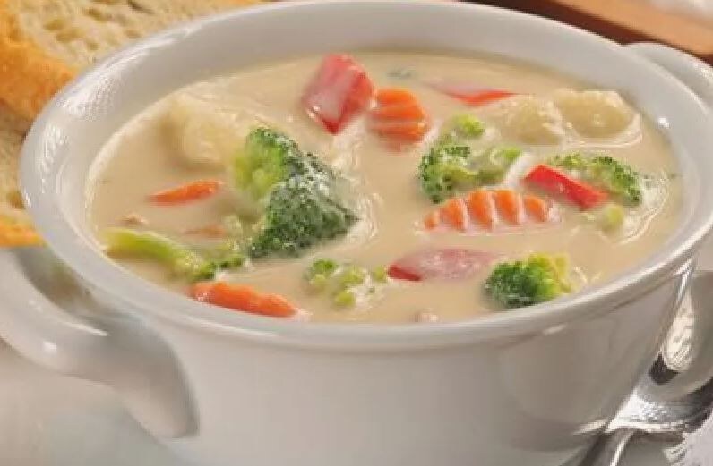 - 6 картофелин; - 2 моркови; - 1/2 кочана свежей капусты или цветной; - 1 ст. ложка масла; - 1 л молока; соль. Все овощи приготовить таким образом, как и для других супов (картофель нарезать кубиками, морковь можно натереть на крупной тёрке, капусту разрезать на квадратные кусочки. Овощи сварить в небольшом количестве воды. Сначала положить те овощи, которые дольше варятся, а именно морковь, затем капусту и картофель. Когда овощи сварятся, в суп налить цельное молоко, суп не кипятить, а только подогреть.