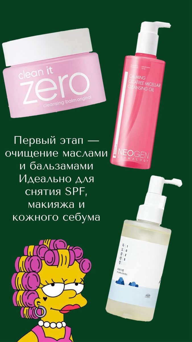 ΠΠ΅ΡΠ²ΡΠΉ ΡΡΠ°ΠΏ β ΠΎΡΠΈΡΠ΅Π½ΠΈΠ΅ ΠΌΠ°ΡΠ»Π°ΠΌΠΈ ΠΈ Π±Π°Π»ΡΠ·Π°ΠΌΠ°ΠΌΠΈ ΠΠ΄Π΅Π°Π»ΡΠ½ΠΎ Π΄Π»Ρ ΡΠ½ΡΡΠΈΡ SPF, ΠΌΠ°ΠΊΠΈΡΠΆΠ° ΠΈ ΠΊΠΎΠΆΠ½ΠΎΠ³ΠΎ ΡΠ΅Π±ΡΠΌΠ°: Round Lab 1025 Dokdo Cleansing Oil β Π»ΡΠ³ΠΊΠΎΠ΅ ΠΌΠ°ΡΠ»ΠΎ Ρ ΠΌΠΎΡΡΠΊΠΎΠΉ Π²ΠΎΠ΄ΠΎΠΉ, Π³Π»ΡΠ±ΠΎΠΊΠΎ ΠΎΡΠΈΡΠ°Π΅Ρ ΠΈ ΠΎΠ΄Π½ΠΎΠ²ΡΠ΅ΠΌΠ΅Π½Π½ΠΎ ΡΠ²Π»Π°ΠΆΠ½ΡΠ΅Ρ ΠΊΠΎΠΆΡ Neogen Calming Cica Micellar Cleansing Oil β ΠΈΠ΄Π΅Π°Π»ΡΠ½ΡΠΉ Π²Π°ΡΠΈΠ°Π½Ρ Π΄Π»Ρ ΡΡΠ²ΡΡΠ²ΠΈΡΠ΅Π»ΡΠ½ΠΎΠΉ ΠΊΠΎΠΆΠΈ, ΡΡΠΏΠΎΠΊΠ°ΠΈΠ²Π°Π΅Ρ Π±Π»Π°Π³ΠΎΠ΄Π°ΡΡ ΡΠ΅Π½ΡΠ΅Π»Π»Π΅ Banila Co Clean It Zero Cleansing Balm β ΠΊΡΠ»ΡΡΠΎΠ²ΡΠΉ Π±Π°Π»ΡΠ·Π°ΠΌ, ΠΊΠΎΡΠΎΡΡΠΉ ΡΠ°Π΅Ρ Π½Π° ΠΊΠΎΠΆΠ΅ ΠΈ ΠΌΡΠ³ΠΊΠΎ ΡΠ°ΡΡΠ²ΠΎΡΡΠ΅Ρ Π΄Π°ΠΆΠ΅ ΡΡΠΎΠΉΠΊΠΈΠΉ ΠΌΠ°ΠΊΠΈΡΠΆ ΠΡΠΎΡΠΎΠΉ ΡΡΠ°ΠΏ β ΠΌΡΠ³ΠΊΠΎΠ΅ ΠΎΡΠΈΡΠ΅Π½ΠΈΠ΅ Π£Π΄Π°Π»ΡΠ΅ΠΌ ΠΎΡΡΠ°ΡΠΊΠΈ ΠΈ ΠΎΡΠ²Π΅ΠΆΠ°Π΅ΠΌ ΠΊΠΎΠΆΡ: Medi-Peel Algo-Tox Deep Clear β Π³Π»ΡΠ±ΠΎΠΊΠΎ ΠΎΡΠΈΡΠ°Π΅Ρ ΠΏΠΎΡΡ ΠΈ Π΄Π°ΡΡ ΡΡΡΠ΅ΠΊΡ Β«Π΄Π΅ΡΠΎΠΊΡΠ°Β» Anua Hyaluronic Acid Hydrating Gentle Foaming Cleanser β ΡΠ²Π»Π°ΠΆΠ½ΡΠ΅Ρ ΠΈ Π½Π΅ ΠΏΠ΅ΡΠ΅ΡΡΡΠΈΠ²Π°Π΅Ρ ΠΊΠΎΠΆΡ Beauty of Joseon Green Plum Refreshing Cleanser β ΠΎΡΠ²Π΅ΠΆΠ°Π΅Ρ, Π²ΡΡΠ°Π²Π½ΠΈΠ²Π°Π΅Ρ ΡΠΎΠ½ ΠΈ ΠΈΠ΄Π΅Π°Π»ΡΠ½ΠΎ ΠΏΠΎΠ΄Ρ