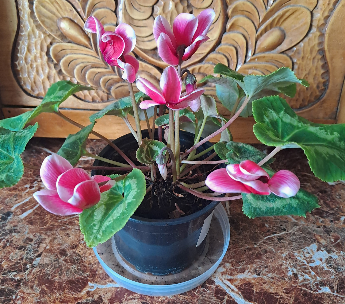 Несколько лет назад мне подарили замечательный цветок цикламен. До приобретения я была уверена, что это крайне привередливое растение, однако опыт показал обратное. Я бы даже сказала, что среди моих цветов ещё не встречалось настолько неприхотливого растения. Цикламен считается капризным из-за особенностей ухода и подверженности заболеваниям. Однако проблемы появляются только при неправильных условиях. Если создать цикламену благоприятные условия, растение может цвести долго и обильно Все цикламены - это клубневые растения, вырастающие до 30-35 см. У этих цветов есть некоторые особенности: цветы и листья у них вырастают непосредственно от верхушки клубня, который выступает над уровнем почвы примерно на треть своей высоты и на котором находится одна точка роста. У нас в стране очень любят цикламен и часто называют его «альпийская фиалка» за нежные цветы и зимнюю активность. Кроме того, цикламены можно высаживать на лето в уличный цветник и они там себя прек