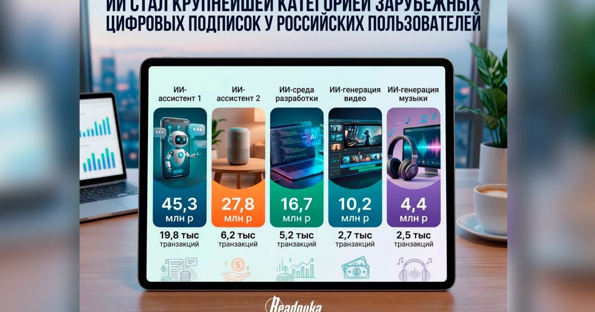 Искусственный интеллект стал самой популярной категорией зарубежных цифровых подписок среди российских пользователей. К таким выводам пришли аналитики сервиса «Плати по миру», с исследованием которого ознакомилась Readovka. Так, в марте 2026 года на долю ИИ-сервисов пришлось 19,6% всего оборота подписок. Это превышает совокупные траты на игры, образовательные платформы и бизнес-приложения. В числе крупнейших получателей платежей оказались 2 ИИ-ассистента, которым перевели 478 тыс евро (около 45,3 млн рублей) и 294 тыс евро (27,8 млн рублей). Помимо этого, в топ вошли сервисы для разработки, генерации видео и музыки, а также работы с API. Анализ поведения пользователей показал, что нейросети перестали быть узкоспециализированным инструментом и превратились в полноценную рабочую среду. В среднем один пользователь оплачивает от 7 до 9 различных ИИ-сервисов, формируя собственный технологический стек. Только на чат-боты за месяц пришлось более 19,8 тыс транзакций, что указывает на их регуля
