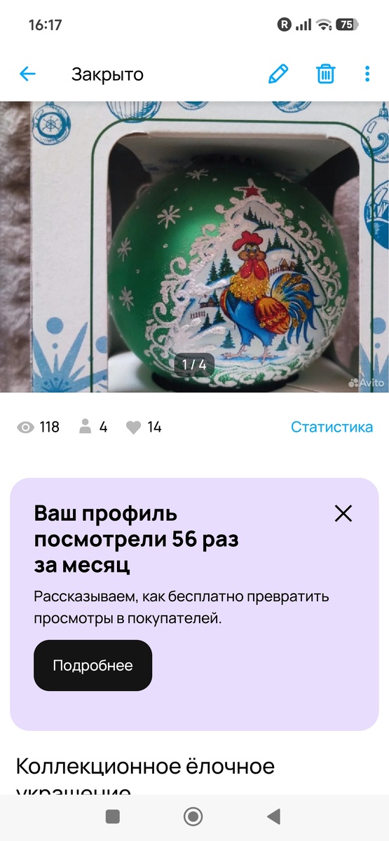 Всем привет! Не поделилась с вами в начале марта своими продажами на Авито в феврале, но их почти и не было. Точнее, была одна личная встреча: купили новогоднее украшение. На него было очень много просмотров, многие спрашивали, но так и не выкупили. А женщина написала мне и на следующий день забрала.
