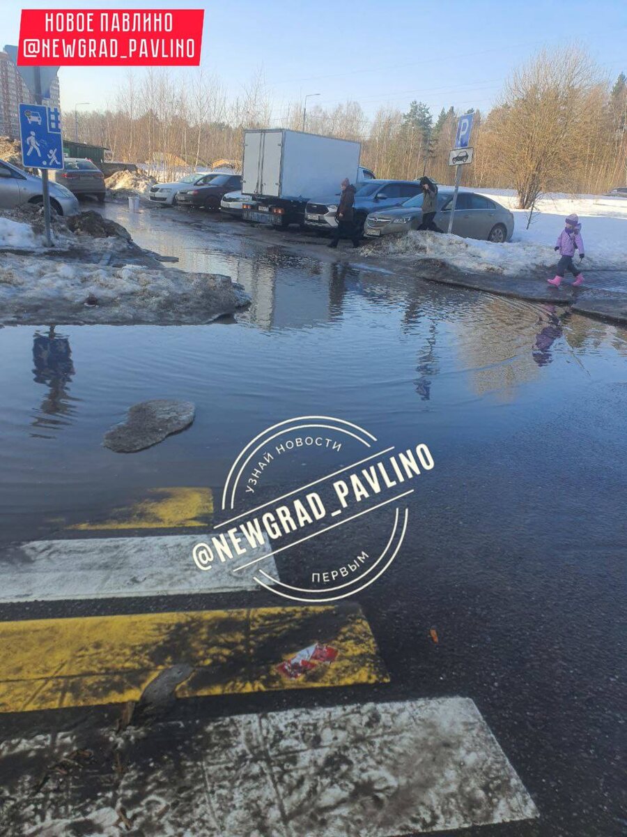 : Огромная лужа и глыбы снега вокруг. Обстановка за домом Бояринова, 19. К Пятерочке и к Ленте приходится пробираться. Очень скользко, много мам с колясками. Почему комунальщики не убирают? Больше интересных новостей в 📲 max.ru/newgrad_pavlino ⚠️НОВОЕ ПАВЛИНО 🆕🆕🆕🆕🆕🆕✅ Прислать новость|Подписаться ❤️