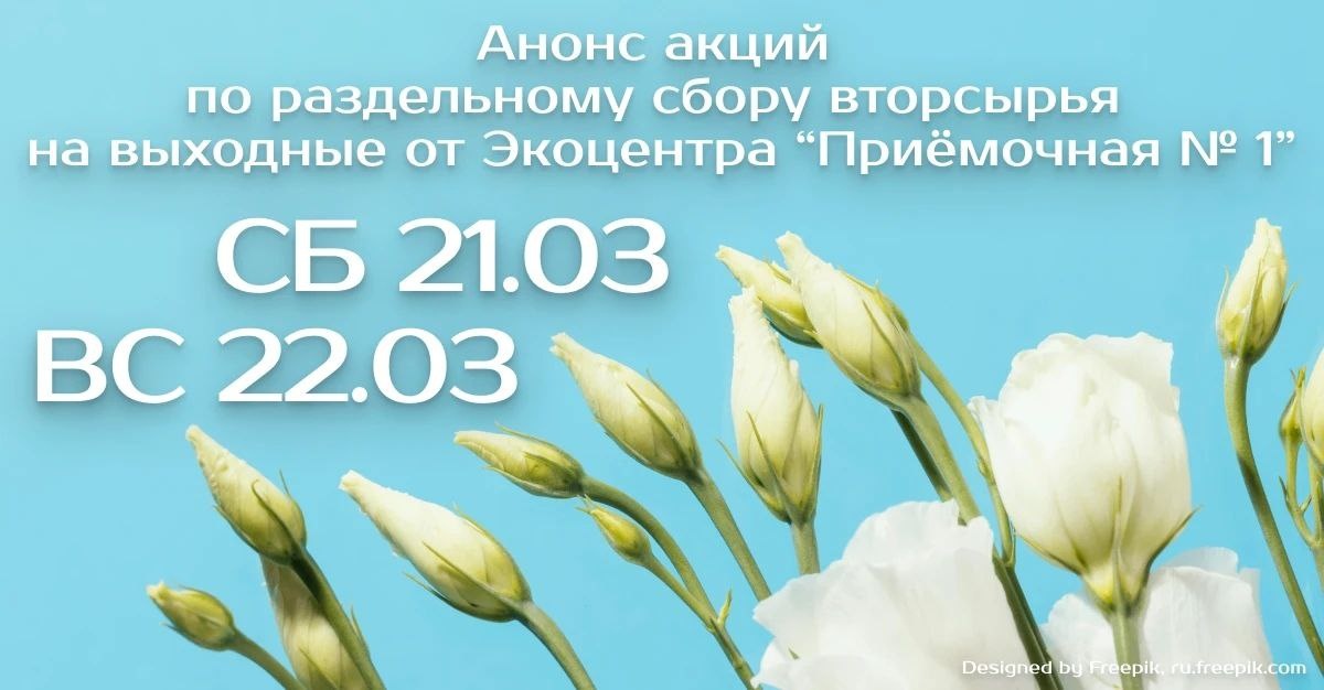 ! Ждем вас на акции по раздельному сбору сортированных бытовых отходов! СБ 21.03 Королёв Акция экопункта сообщества "Экооперация Мытищи-Королёв". Адрес: улица Калинина, 6В Вход напротив медклиники "Пластика С" Время: с 11:00 до 13:00 Инструкция по приему вторсырья: https://telegra.ph/Kalinina-6v-11-19 Задать вопрос вы можете в чате пункта https://t.me/c/3621172628/1 или организатору акции Наталье: +7 916 350-55-00 ВС 22.03 Королёв Акция сообщества "Экооперация" в партнерстве с Экоцентром "Приёмочная №1" Где: Королев, у детского центра “Смартум” Адрес: улица Строителей, 15 А Время: с 12:00 до 14:00 Что принимается: свериться можно по ссылке https://priemochnaya1.ru/whatdoweaccept с учётом дополнений https://telegra.ph/Dopolneniya-k-pravilam-priyoma-vtorsyrya-07-20 Задать вопрос можно в этом посте: https://t.me/Ecooperacia/3431 На акции будет стол Реюза! Что принимают на обмен - читайте в этом посте: https://t.me/Ecooperacia/3437 Приходите к нам в "Приёмочную"! Оставить вторсырье в на