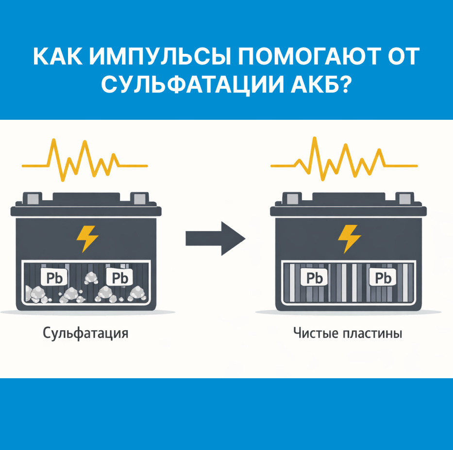 На прошлой неделе в статье мы подробно рассказывали про импульсные зарядки - современные устройства, которые подают ток короткими импульсами, что позволяет деликатно заряжать аккумуляторы и продлевать их срок службы. Важно отметить, что все зарядные устройства НПП "Орион" относятся именно к импульсному типу, сочетая в себе надёжность и эффективность для автомобильных АКБ. Сульфатация - это процесс образования кристаллов сульфата свинца на пластинах аккумулятора, который неизбежно происходит при разряде или длительном простое АКБ. Эти кристаллы снижают ёмкость батареи, увеличивают внутреннее сопротивление и могут привести к полной потере работоспособности. Без какого-либо вмешательства аккумулятор приходится менять. Импульсы в зарядных устройствах помогают бороться со сульфатацией АКБ, разрушая крупные кристаллы сульфата свинца на пластинах электродов, которые образуются при разряде или простое батареи. Это возвращает активный материал в раствор электролита, восстанавливая ёмкость и сни