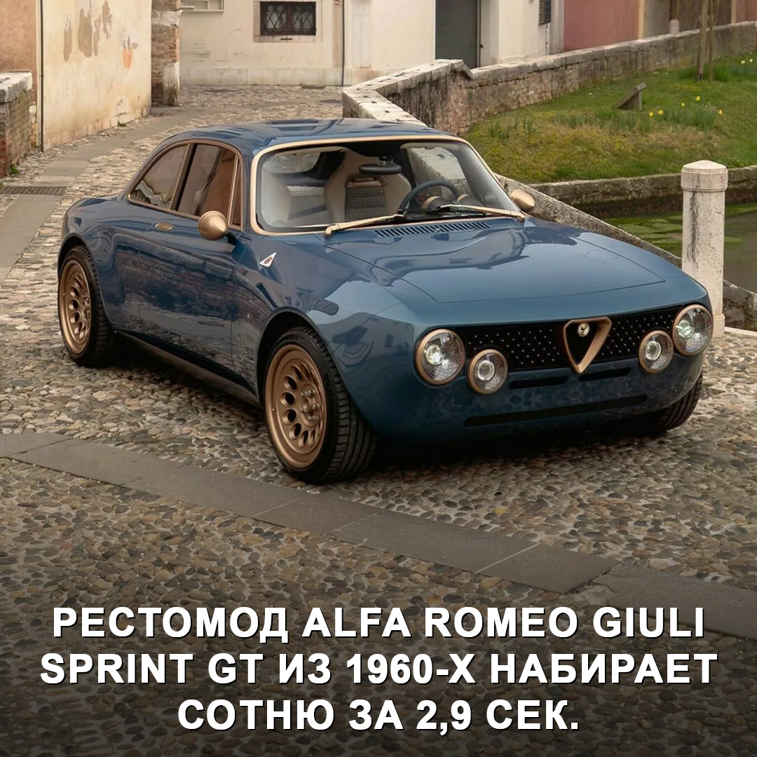 Итальянская компания Totem создала уникальный рестомод GT Electric Zeal 01 с кузовом из углеволокна в стиле Alfa Romeo Giulia Sprint GT из 1960-х. Автомобиль вручную окрашен, внутри у него натуральные материалы и спортивные сиденья с карбоновым каркасом. Силовая установка — 600-сильный электродвигатель на задней оси. Он позволяет разогнаться до сотни за 2,9 сек. и проехать около 480 км на одной зарядке. Также у Альфы тормоза Brembo и амортизаторы с электронным управлением. Кстати, Totem может собрать такой же автомобиль с 2,8-литровым битурбо V6 на 750 л.с., если клиент не хочет электромобиль 😉 Вы бы какой вариант выбрали? #дромновость #италия #totem #alfaromeo #рестомод