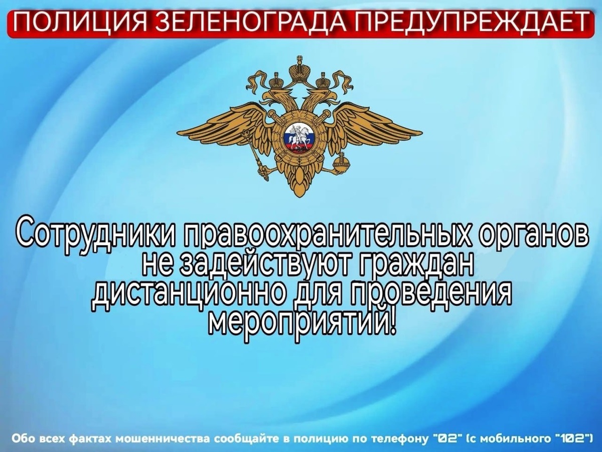 На фоне растущего числа сообщений о преступлениях, совершенных людьми, которые сами стали жертвами мошенников, в полиции Зеленограда напомнили, что никогда дистанционно не задействуют граждан для проведения мероприятий. Баннер с соответствующим текстом на текущей неделе распространила пресс-служба окружного УВД. В последнее время увеличилось количество сообщений о преступлениях, которые по указке мошенников совершали люди, считавшие, что выполняют задание правоохранительных органов. Так, широкий общественный резонанс на днях получила история молодого футболиста екатеринбургского «Урала», который, находясь под воздействием злоумышленников, по версии следствия, совершил квартирную кражу в Москве, а затем убил вернувшуюся в квартиру хозяйку жилища. Кроме того, в отношении него возбуждено уголовное дело о насильственных действиях сексуального характера в отношении несовершеннолетней дочери погибшей женщины, которые молодой человек также предположительно совершил по указанию телефонных мош
