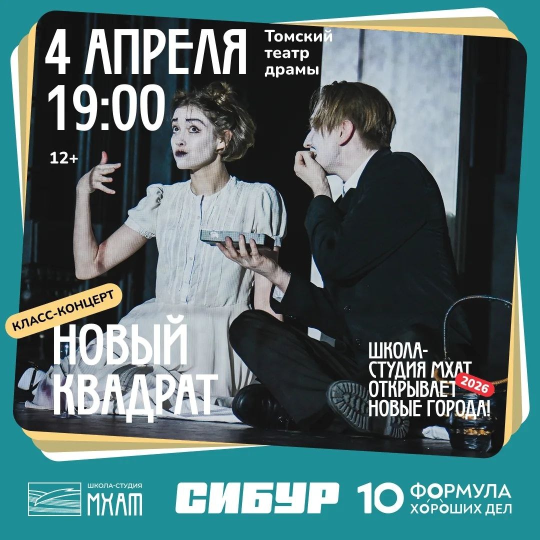 По хорошей, благодаря «Формуле хороших дел» СИБУРа, традиции, к нам снова едут студенты Школы-студии МХАТ. В театре Драмы 4 апреля будет класс-концерт «Новый КВАДРАТ». Режиссеры-педагоги Сергей Земцов и Илья Бочарников. Пластический спектакль покажут студенты с курса ушедшего недавно от нас ректора Игоря Золотовицкого, который еще год назад был в Томске, шутил, говорил какие-то особенно хорошие слова про абитуриентов театральных вузов из Сибири, про своих детей-режиссеров и про замечательную свою супругу, актрису Веру Харыбину. , Вера Харыбина в качестве педагога-режисера 5 апреля представит томским зрителям студенческий спектакль «Безумный день или Женитьба Фигаро». Два часа 50 минут чистого смеха с одним антрактом. Спектакль большой, веселый, светлый, каким и был Игорь Золотовицкий
