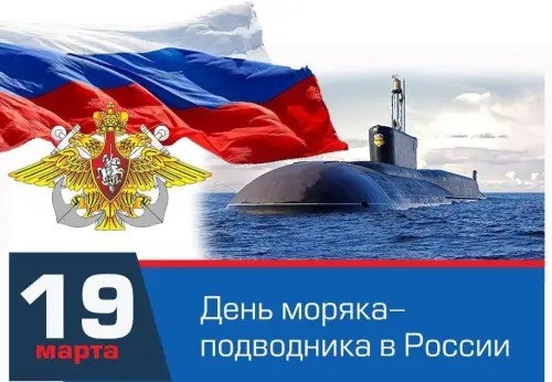 Ежегодно 19 марта в России отмечается День моряка-подводника — профессиональный праздник военнослужащих и гражданского персонала подводных сил Военно-Морского Флота Российской Федерации. В 1906 году по указу императора Николая II в классификацию судов военного флота был включен новый разряд кораблей — подводные лодки. Этим же указом в состав Российского флота были включены 10 подводных лодок. Первая из них — «Дельфин» — была построена на Балтийском заводе в 1904 году. Этот день считается официальной датой рождения подводных сил российского флота. Хотя экспериментальные подводные лодки начали строить в России еще в XIX веке, конструирование их как одного из важнейших направлений военного судостроения зародилось в начале XX века. Русско-японская война (1904–1905) стала первой в мировой истории войной, в которой принял участие новый класс военных кораблей — подводные лодки. Первое соединение России — бригада подводных лодок — было сформировано в 1911 году в составе Балтийского флота и