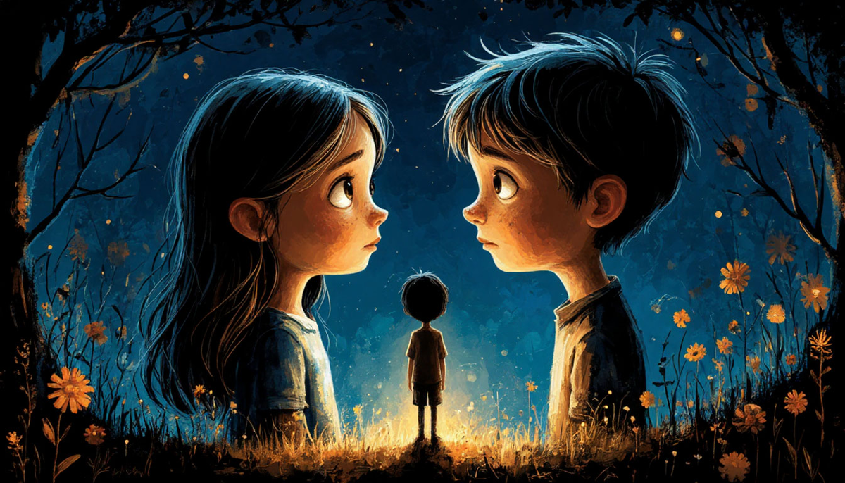 Она вздрогнула, обернулась. В темноте стоял мальчик. Чуть постарше её, с тёмными глазами и странной, очень доброй улыбкой.