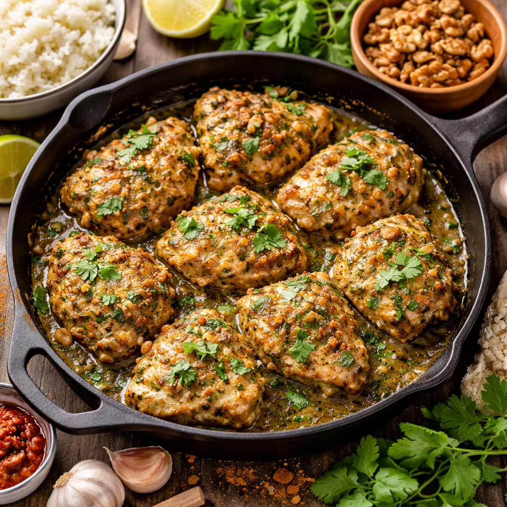 Знаете, бывают такие дни, когда всё летит вверх тормашками? Вот это был мой вторник! С утра — бегом на работу, потом звонки, потом дети с их «мам, а что на ужин?»… и я стою вечером на кухне, уставшая, с курицей в руках и нулём идей. И тут начинается ситком! Я решила «импровизировать». Открыла шкаф — орехи, специи, какая-то зелень… Думаю: ну сейчас будет шедевр! Через 15 минут кухня выглядела как после кулинарного апокалипсиса, а запах… ммм… странный. Муж заглядывает и так осторожно: «Это точно еда?» Я уже почти сдалась! Но нет. Села, выдохнула, открыла ноутбук — и понеслось. Начала искать что-то простое, но вау. И бац! Натыкаюсь на этот рецепт. Прямо в сердце! Орехи, чеснок, зелень — всё как я люблю. Натурально, ярко, с характером! На следующий день решила дать себе реванш. Всё чётко, спокойно, с настроением. И вы не поверите — получилось ТАК вкусно, что дети попросили добавку, а муж сказал: «Вот это уровень!» И в этот момент я поняла — такие находки нельзя держать при себе. Их нужно