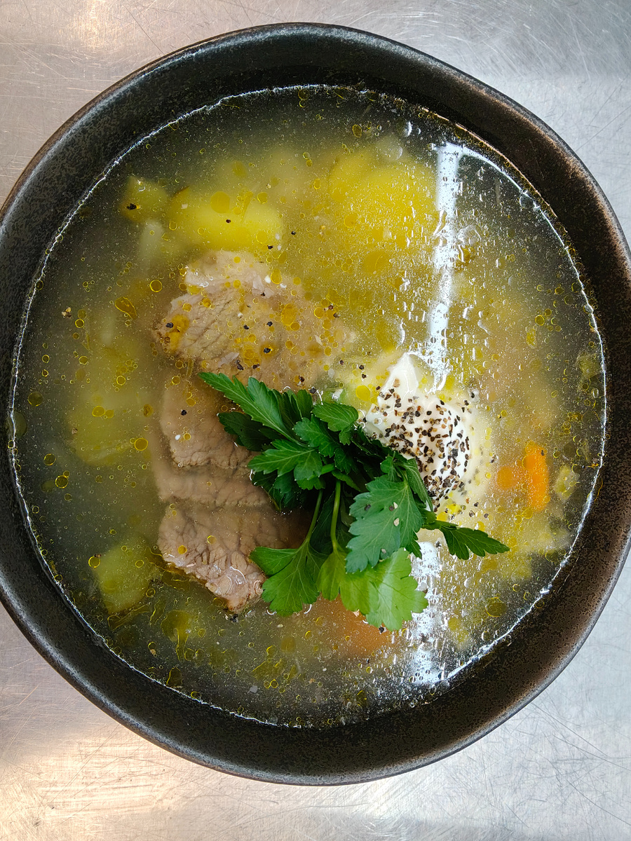 В советское время рассольник прочно вошёл в меню столовых и ресторанов, став классикой наряду с борщом и щами. Сегодня существует множество вариаций: с курицей, грибами, без мяса, но классика – это именно наваристый говяжий бульон, перловка, солёные огурцы и обязательная заправка из пассерованных овощей.