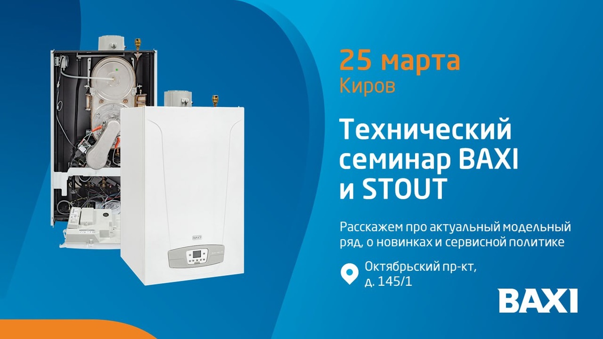 ! Друзья, приглашаем на наш технический семинар по оборудованию BAXI совместно с брендом STOUT. 🗓 25 марта, Ср. 📍 г. Киров, Октябрьский пр-кт, д. 145/1 В ПРОГРАММЕ: ✅ Актуальный модельный ряд BAXI ✅ Новинки компании ✅ Сервисная политика ✅ Вопросы и ответы со специалистами 🎙СПИКЕРЫ: Технические специалисты BAXI (Нижний Новгород): 🔹 Андрей Григорьянц 🔹 Андрей Петров ⚠️ ВАЖНО: • Предварительная регистрация ОБЯЗАТЕЛЬНА • Количество мест ограничено 📝РЕГИСТРАЦИЯ 📌 Полный список семинаров тут 🫴Для участников предусмотрено питание + развлекательная часть! Ждём вас! 🔥 🔔Мы в MAX #BAXI #STOUT #ТехническийСеминар
