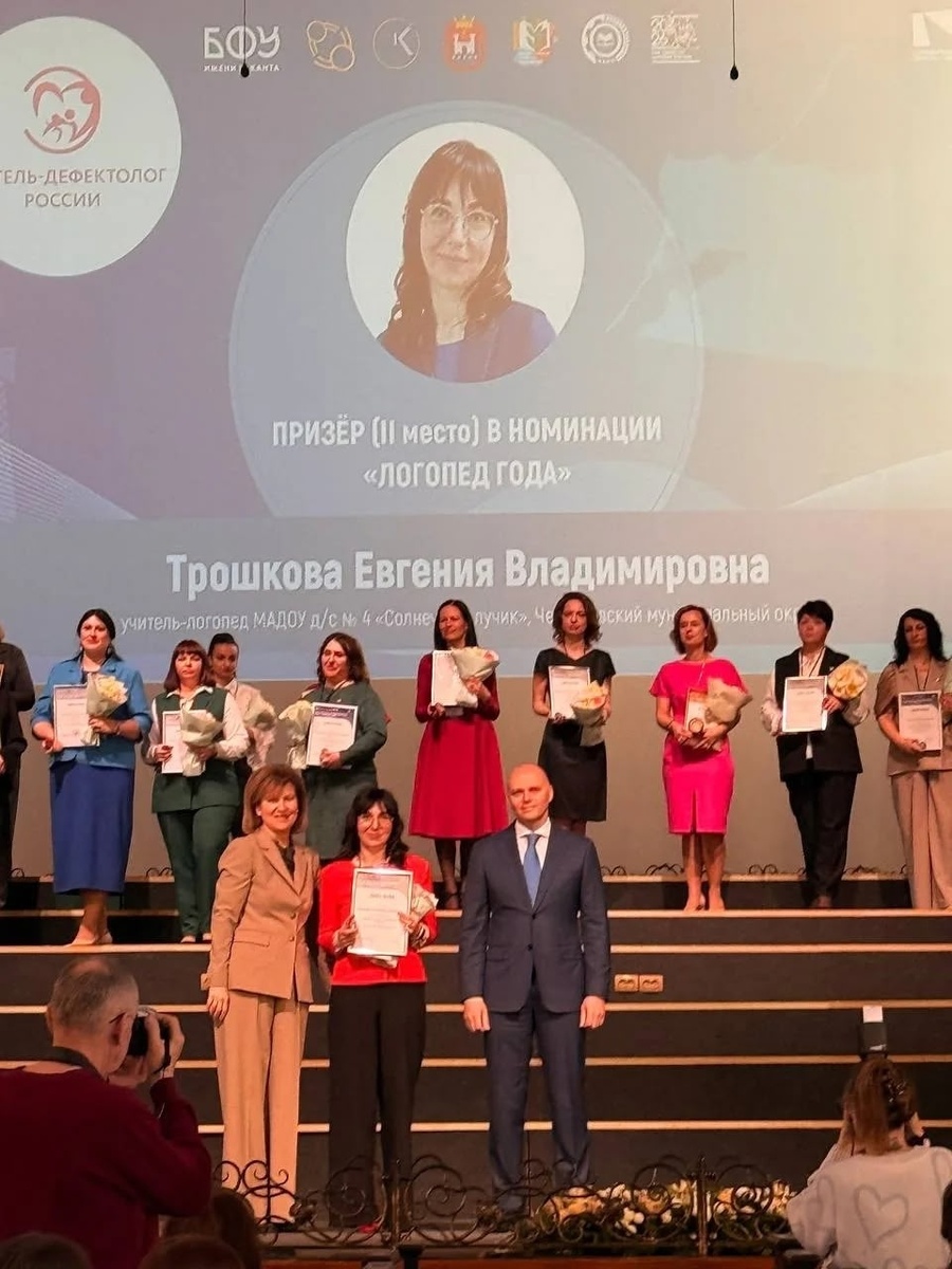 Вчера, 18 марта, в Кафедральном соборе Калининграда состоялась церемония подведения итогов областных этапов всероссийских конкурсов профессионального мастерства. В этом году педагогическое сообщество Черняховска вновь подтвердило свой высокий статус, завоевав сразу несколько престижных наград: Тихонович Адель Каримовна, учитель музыки МАОУ «СОШ № 5 им. И.Д. Черняховского» — лауреат конкурса «Сердце отдаю детям», а также обладатель специального приза «Сохраняя традиции». Мироненко Ирина Александровна, учитель-дефектолог МАОУ «СОШ № 5 им. И.Д. Черняховского» — призер конкурса «Учитель-дефектолог России». Трошкова Евгения Владимировна, учитель-логопед МАДОУ «Детский сад № 4 «Солнечный лучик» — призер конкурса «Учитель-логопед».