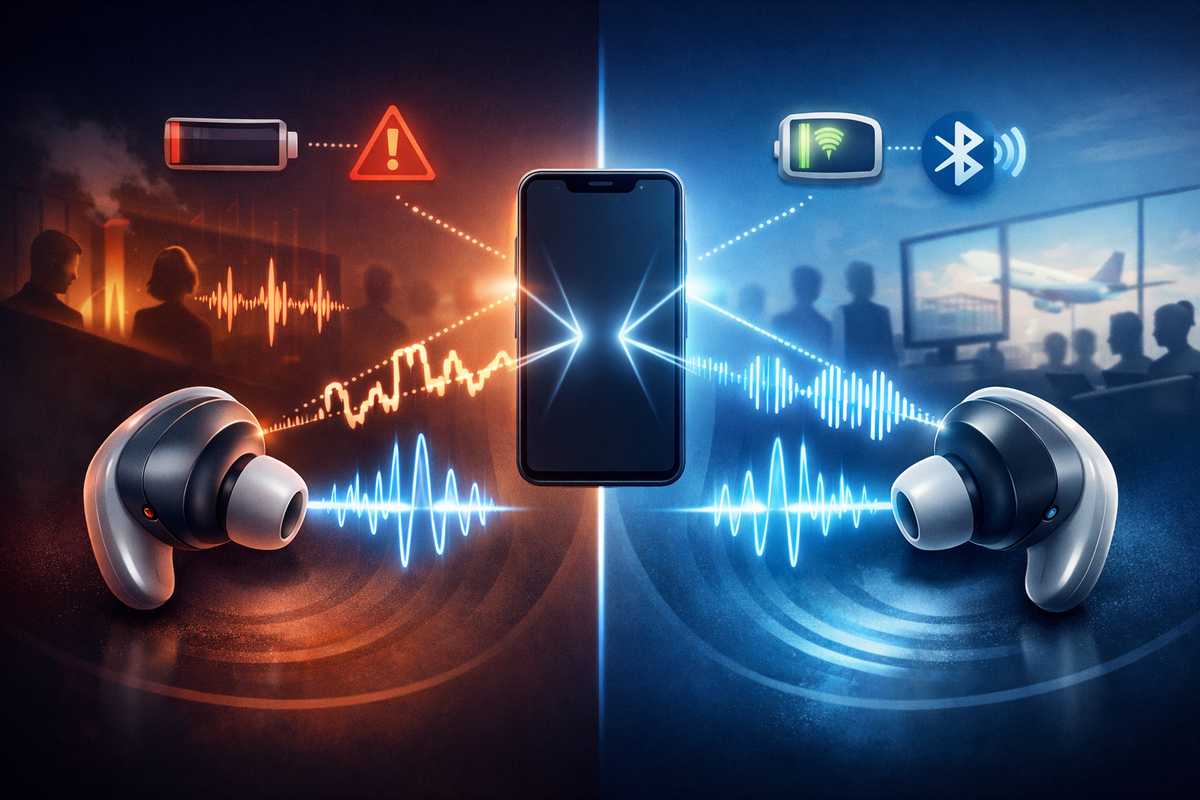 Беспроводное аудио в основном работает на архитектуре, изначально созданной для простых телефонных моно-гарнитур. Чтобы обеспечить стереозвучание в классических TWS-наушниках, производителям приходится использовать каскадную передачу: один наушник принимает сигнал от источника и ретранслирует его на второй, расходуя заряд батареи и увеличивая задержку. К 2026 году этот подход постепенно уступает место новому стандарту LE Audio (Low Energy Audio), который перестраивает логику маршрутизации звука, отказываясь от костылей в пользу умной диспетчеризации. Технология опирается на многопоточную передачу данных, при которой смартфон или ПК отправляет независимые, но синхронизированные сигналы напрямую в левый и правый наушники. За сжатие отвечает LC3, который может обеспечивать сопоставимое с прошлыми поколениями качество звука при вдвое меньшем битрейте. Одна из главных инноваций – переход на изохронные каналы. В старом Bluetooth данные шли потоком: если пакет терялся из-за помех, система пыт