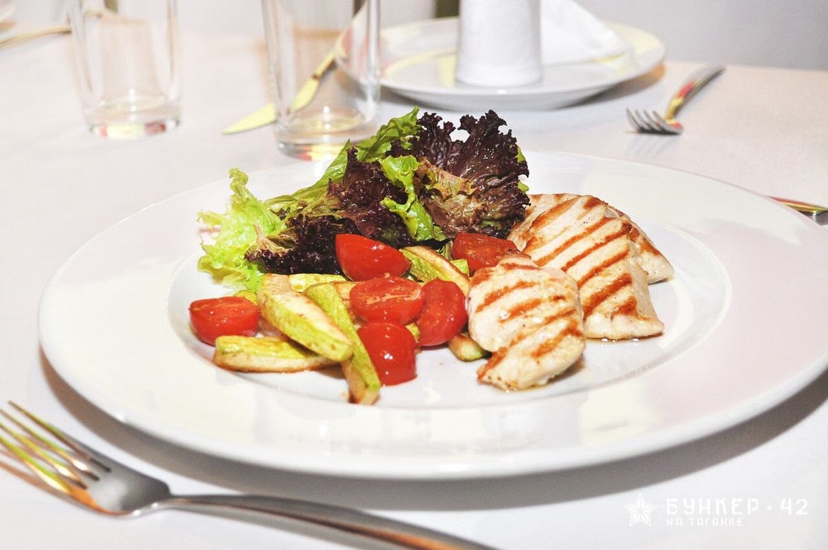 В ресторане «Бункер-42» богатый выбор горячих блюд. В меню «Политбюро» есть любимое блюдо И. В. Сталина – медальоны из индейки «Буржуа».