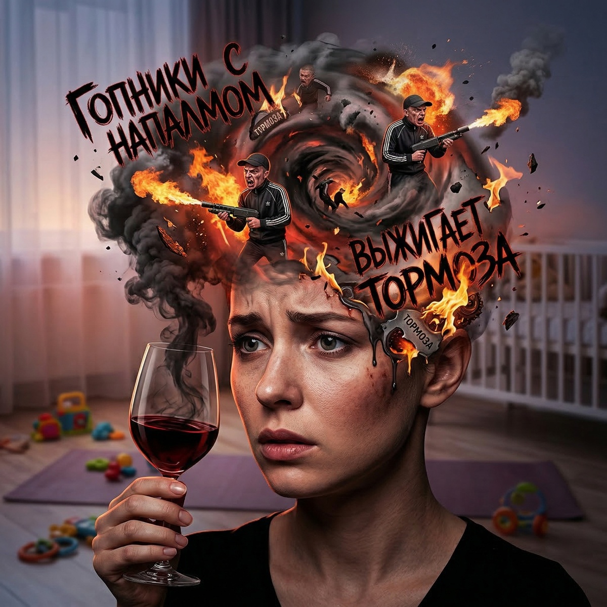 И вот однажды Кира выпивает бокал, а расслабления нет. Тишины нет. Кайфа нет. Гопников нужно больше. Два бокала. Три. Бутылка. А потом и днём, пока ребёнок спит, можно бы налить. На прогулочку с коляской мини-шампусик взять... «Чисто чуть-чуть, я же не под забором, я при ребёнке, это для настроения, для блеска глаз!».