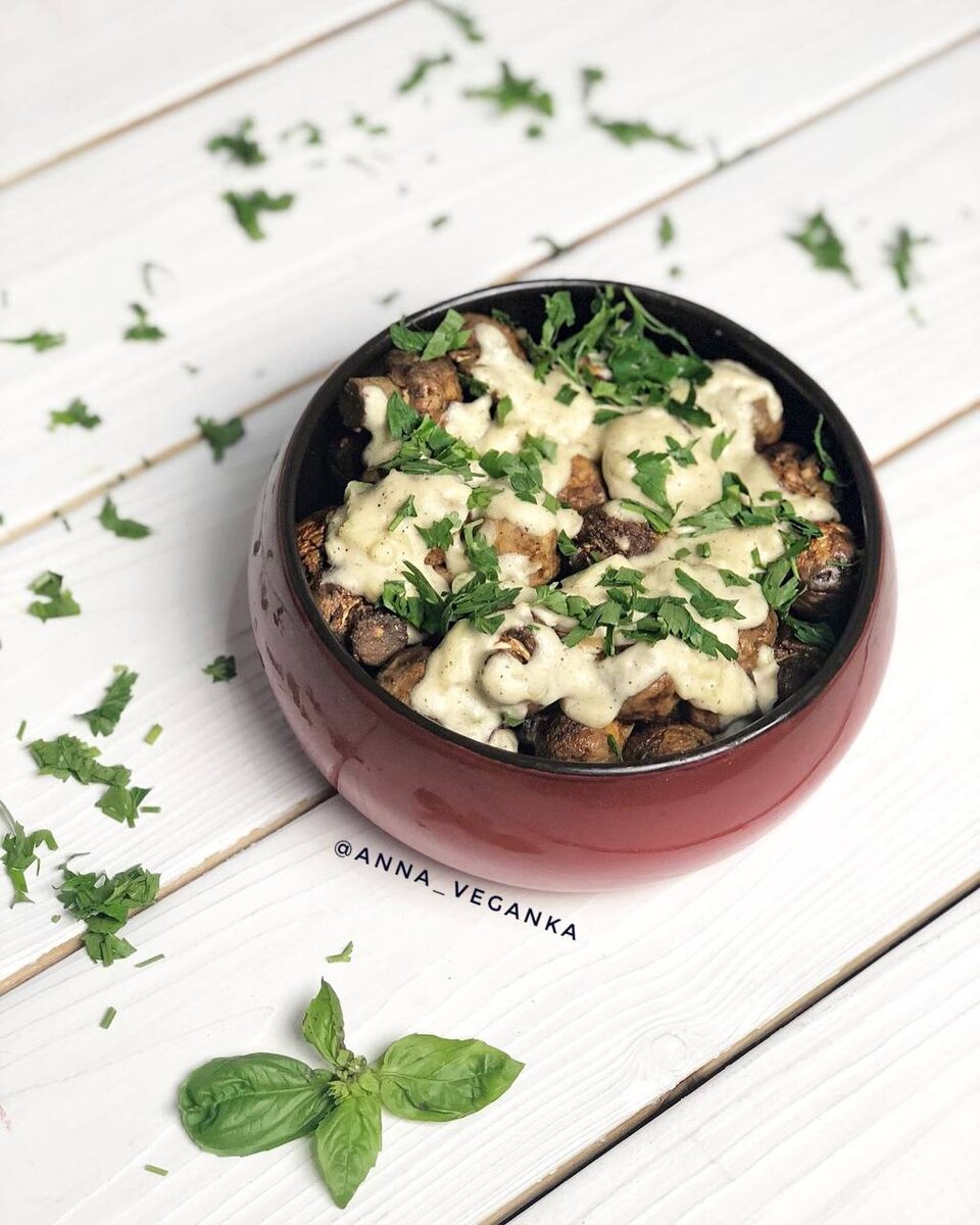 Если вы ищете, что приготовить из грибов в пост, попробуйте этот простой и очень ароматный веганский вариант - грибы в духовке с чесночным соусом. Во время запекания кухня наполняется насыщенным чесночно-грибным ароматом, а сами грибы получаются сочными и мягкими. Дополняет блюдо густой веганский чесночный соус на кешью, который можно использовать не только к грибам, но и как соус для пасты или намазку. Это отличный вариант постного и веганского ужина или гарнира без мяса и молочных продуктов. Почему стоит попробовать этот рецепт? Эти постные грибы с соусом: