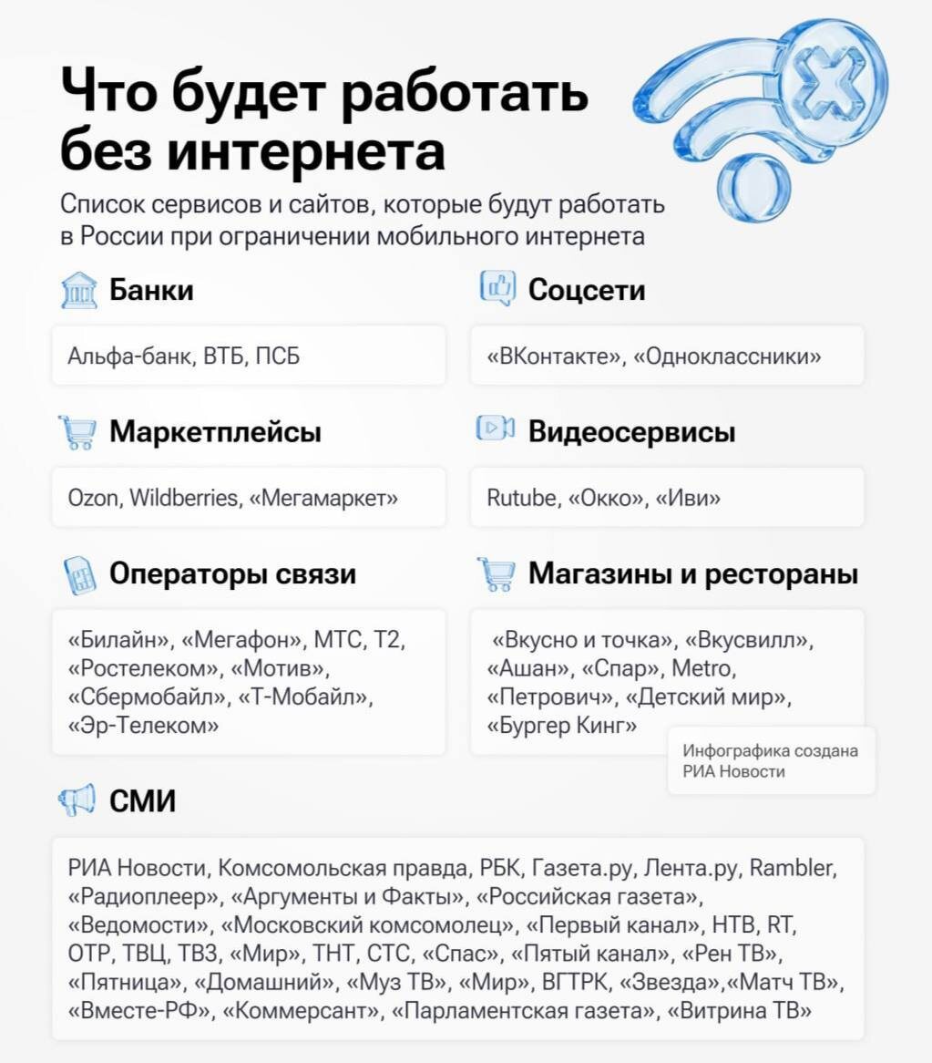 В России составили список сервисов, которые оставят работать при блокировке интернета.