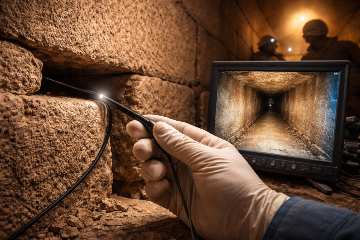 История звучит почти как научная фантастика. Учёные обнаружили скрытый коридор длиной около 9 метров, расположенный над входом в пирамиду, и заглянули внутрь… не разрушив ни одной стены.