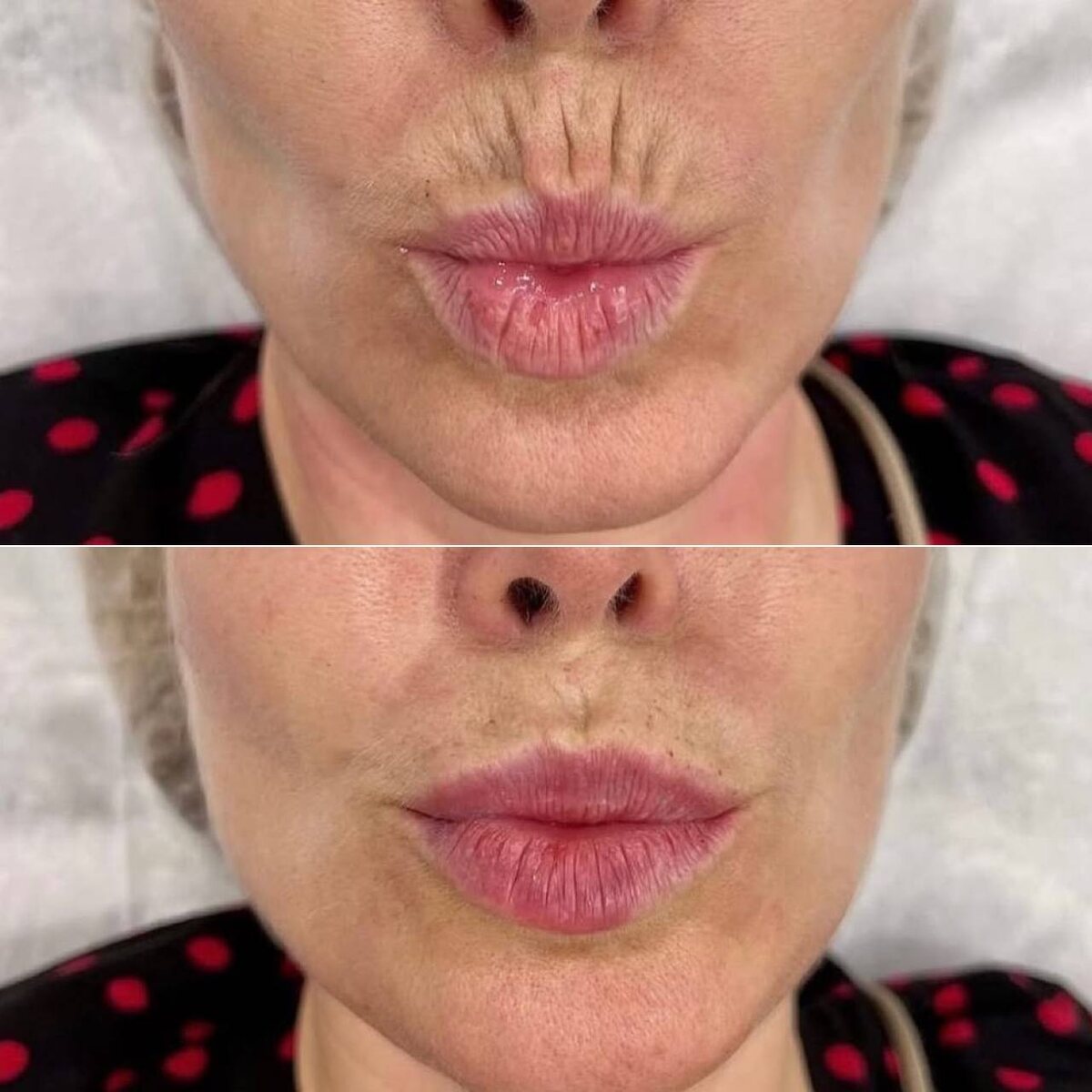̆⠀ ⠀ ‼️Перпендикулярно расположенные линейные морщины (кисетные морщины) - это мелкие складки над верхней губой, которые появляются с возрастом. ⠀ ⠀ ➡️Область вокруг рта очень подвижна, активно участвует в мимике, поэтому первые признаки старения в этой зоне появляются достаточно рано. Главной причиной появления дефекта является активная мимика. ⠀ ✅Выбор метода прежде всего зависит от типа кожи и степени выраженности дефекта. В данном клиническом случае была применена сочетанная методика ботулинотерапия и контурная пластика препаратом на основе гиалуроновой кислоты.⠀ ⠀ ➡️Препараты ботулотоксина способны эффективно разглаживать мелкие морщинки, поскольку они точечно расслабляют мимические мышцы. Препараты на основе гиалуроновой кислоты, когда складки вокруг рта глубокие, необходимо восполнить утраченный объем.⠀ ⠀ ➡️Отличного результата можно добиться, если сочетать коррекцию морщин с деликатным увеличением объема губ. 📋Перед процедурой необходима консульт