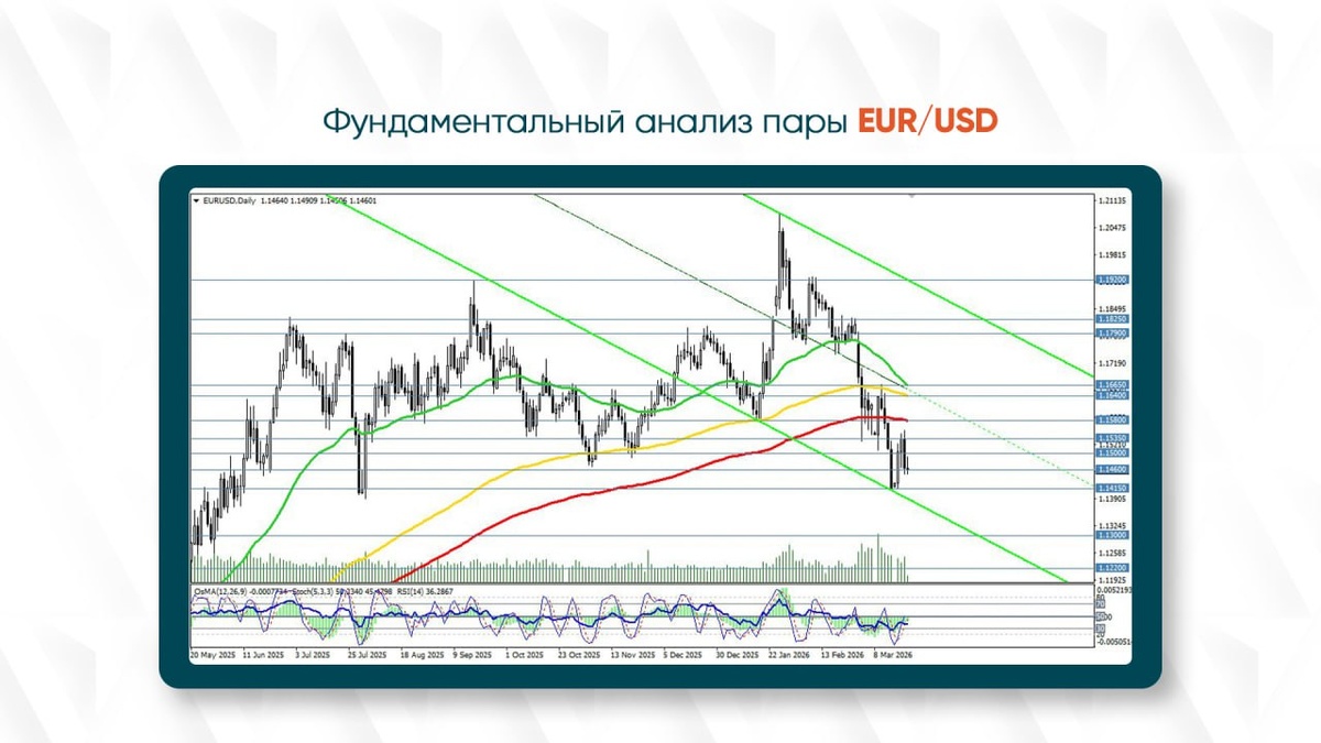 Пара EUR/USD начинает европейскую сессию в районе 1.1460–1.1470 и выглядит заметно подавленной. Давление усилилось после последнего решения ФРС, а впереди — ключевое событие дня: заседание Европейского центрального банка. Сейчас рынок буквально завис в ожидании. Все внимание сосредоточено на том, что скажет Кристин Лагард — именно её риторика определит, увидим ли мы удержание текущих уровней или новый виток снижения. Основной драйвер текущего давления на евро — это позиция Федеральной резервной системы. Ставку оставили без изменений (3,50–3,75%), но куда важнее оказались обновленные прогнозы. Регулятор фактически дал понять: быстрых снижений ставок ждать не стоит. Более того, медианный прогноз предполагает всего одно снижение в 2026 году. Дополнительное давление создал пересмотр инфляции PCE — до 2,7%. Это сигнал рынку: борьба с инфляцией еще не закончена. В результате доллар усилился, а индекс USD вернулся к психологически важной отметке 100. Для EUR/USD это означает одно — давление с