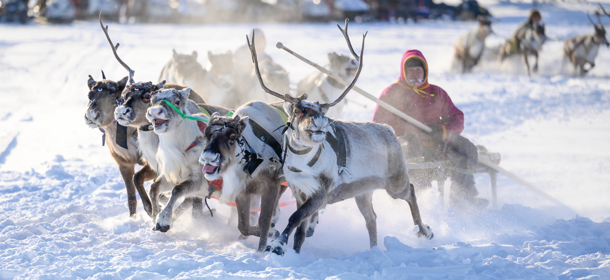 Автор: Оксана ЕРМАКОВА, фото: Андрей ПОНАМАРЕВ Традиционный весенний праздник объединяет всех: и тех, кто всю жизнь провёл в тундре, и тех, кто только знакомится с культурой ямальского Севера. В маленькой, но такой гостеприимной деревне каждый может почувствовать себя частью чего‑то большего - частью сплочённой северной семьи, где ценят взаимопомощь и уважение. Так сложилось, что именно в Харампуре День оленевода сохранил своё северное дыхание. С раннего утра всё вокруг как будто превращается в праздник. И даже старое русло древней реки Харампур открывает свои просторы, даёт добро на проведение торжества. И вмиг белоснежный покров старого русла превращается в гоночную трассу, где соревнуются повелители оленьих упряжек. Десятки заряженных и целеустремлённых оленеводов борются за главные призы - «Бураны». На высоком берегу реки раскинулась площадка праздника: гордо реют над Харампуром флаги, а чумы ждут гостей. Отведать национальные блюда – это гастрономическое счастье. Строганина, мяс