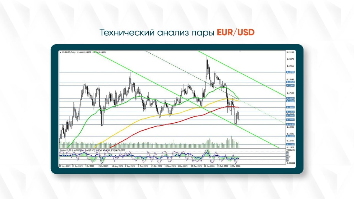 Пара EUR/USD подошла к критической зоне, где каждое движение может стать определяющим на ближайшие недели. Техническая картина остаётся напряжённой: давление продавцов сохраняется, но покупатели готовы перехватить инициативу при пробое важных уровней. Разбираем, какой сценарий сейчас в приоритете и где искать точки входа. С технической точки зрения EUR/USD продолжает торговаться ниже ключевых уровней сопротивления. Цена удерживается под отметкой 1.1580 (EMA200 на дневном графике), а также ниже краткосрочных барьеров 1.1535 (EMA200 на часовом графике) и 1.1665 (EMA200 на 4-часовом графике). Такая конфигурация указывает на сохраняющийся нисходящий импульс. Пока цена остается ниже этих уровней, рынок находится под контролем продавцов, а попытки роста выглядят как коррекционные откаты. Базовый сценарий предполагает продолжение снижения. Ключевым сигналом станет пробой сегодняшнего минимума на уровне 1.1444. В этом случае цена может направиться к мартовским минимумам вблизи 1.1415 (EMA144 н