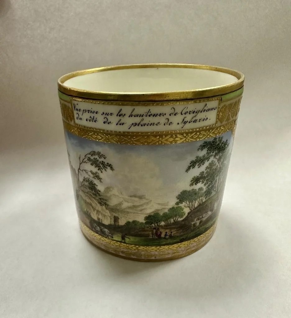 Венский фарфоровый завод, Роял Вена, Royal Vienna, 1800 Чашка; фарфор, крытьё бирюзовой краской, орнаментальная роспись золотом с рельефным мастичным декором, лепнина, позолота. По тулову полихромная живописная миниатюра "Vue de la Grotte des Chevres sur l'Etna (вид Грота серны близ Этны)", как гласит надпись над изображением в прямоугольном мастичного золота картуше. Марка "шит"- подглазурный кобальт; шифр года производства "800" - в тесте. Вена, Аугартен, Императорская фарфоровая мануфактура, 1800 год. Состояние: превосходное! Стоимость лота: 190 000 ₽ Подробнее на нашем сайте