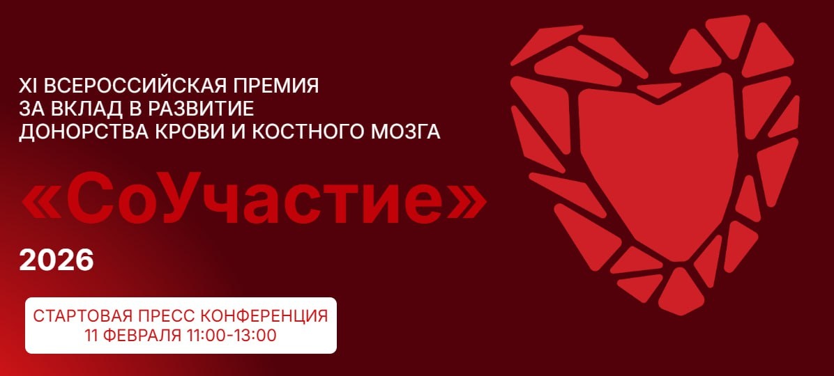 » Он продлится с 11 февраля по 15 апреля 2026 года. Премия «СоУчастие» учреждена в 2010 году Национальным фондом развития здравоохранения и Координационным советом при ОП РФ по донорству крови и костного мозга premiasouchastie.ru/. «Премия ”СоУчастие” — общественная награда, призванная подчеркнуть вклад участников института донорства крови и ее компонентов и донорства костного мозга в сохранение жизни и здоровья соотечественников», — считают организаторы. В фокусе премии этого года идея «Донорство для всех. Помочь может каждый», посвященная 100-летию Службы крови России. Предусмотрены также два ключевых направления: - конкурс лучших практик «Донорство крови и костного мозга. Помочь может каждый»; - специальная награда «Общественное признание», которая вручается по решению оргкомитета. Основной целью премии остается признание вклада организаций и активистов в развитие безвозмездного донорства крови и костного мозга. Принять участие в конкурсе могут как индивидуальные участники, та