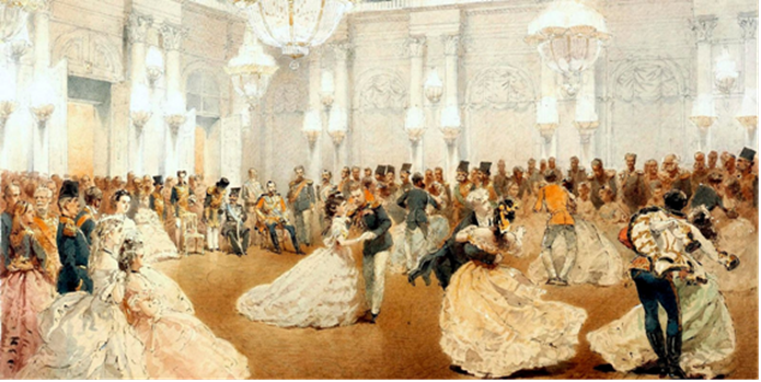 От русских былин к русской опере К началу 19 века в России, как и в Европе, церковные хоралы порядком надоели, и композиторам стали поступать заказы сочинить что-нибудь повеселее. С танцами, пением и чтением речитативов. На балах уже давно танцевали вальсы, полонезы, мазурки и польки. Как в Европе. Бал. Мазурка. Середина 19 века. Но в иерархии музыкальных жанров, со времён Екатерины II, самое престижное место отводилось опере. Русские люди очень талантливы, причём во всём. За примерами далеко и ходить не надо. Совсем недавно, если подумать, (в середине 19 века), в тогдашней столице России, городе С-Петербурге, был образован любительский музыкальный кружок. «Могучая кучка». Так окрестил его известный искусствовед того же времени (и наставник царских наследников) В.В. Стасов. С его лёгкой руки любительский кружок с таким забавным названием навсегда войдёт в историю Русской музыки. Несколько человек, не имеющих специального музыкального образования (Римский-Корсаков вообще служил на флоте