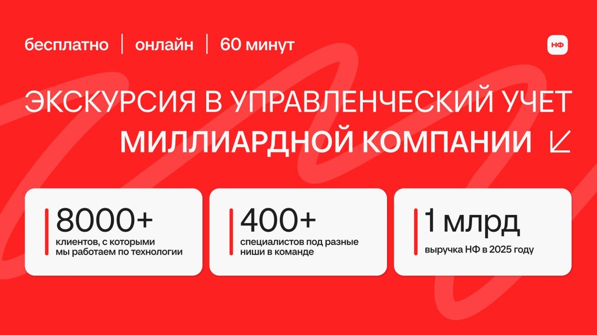 🔔 Завтра зарплата, а денег нет. ⬇️ В финансах хаос: непонятно, сколько безопасно тратить. ⬇️ Система не работает, данные врут. Если знакомо, значит, пора действовать. Приходите на бесплатную экскурсию в учет миллиардной компании. За 1 час вы узнаете: ➖ На какие цифры смотреть. В кризис смещаем фокус с выручки на ликвидность и рентабельность. ➖ Как выглядит эталонная система учета. Разберем, как строить финслужбу для компаний разного масштаба. ➖ С чего начать строить систему. Определим состояние вашей системы и найдем приоритетные задачи. ➖ Где связь между цифрами и управленческими решениями. Покажем, как бизнес становится прозрачным и управляемым. Бонусы после регистрации: 🎁 Запись закрытого вебинара Александра Афанасьева «Битва за прибыль». 🎁 Обучающий курс «Деньги под контролем». 🎁 Набор главных таблиц для контроля денег в бизнесе. ЗАРЕГИСТРИРОВАТЬСЯ