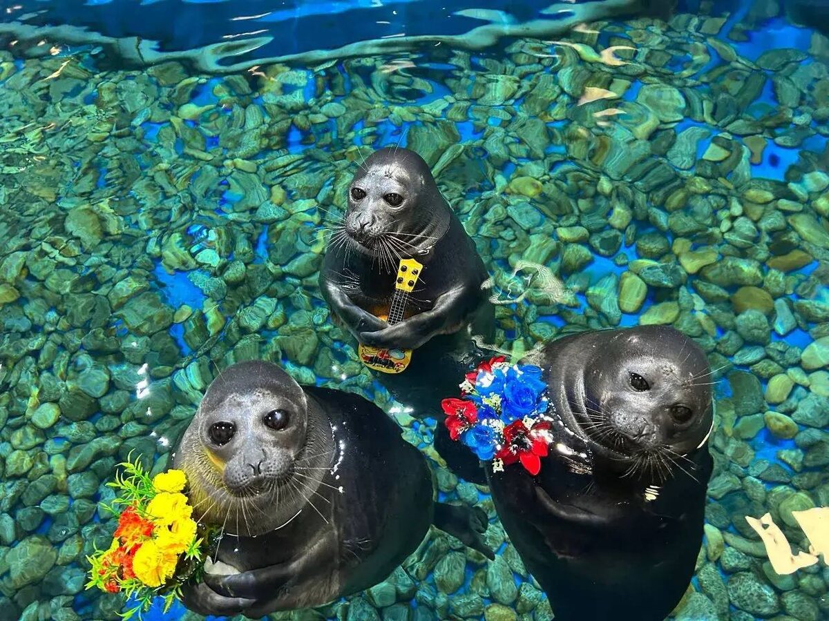 Байкальские нерпы Бусинка и Тучка из Приморского океанариума сегодня отметили 10-летний юбилей. В честь праздника сотрудники украсили бассейн гирляндами и цветами и подготовили главный сюрприз — рыбный торт. К празднику присоединился и их друг Альф, которому исполнилось 14 лет. Он выучил новые трюки, освоил гитару и зажигательно станцевал ламбаду вместе с подругами. «Комсомольская правда» пишет, что Бусинку легко узнать по вытянутому телу — она отличается своенравным, но обаятельным характером и находчивостью. Тучка, самая «круглая» из троицы, ведет себя более собранно и точно выполняет команды тренеров. Альфу выдают складки на мордочке и любопытство — он с интересом наблюдает за посетителями. Сотрудники океанариума отметили, что такие праздники и тренировки помогают морским млекопитающим поддерживать интеллект и физическую форму. ❤️ — именинникам Фото и видео из соцсетей Приморского океанариума 🟦 «Чита.Ру» в MAX