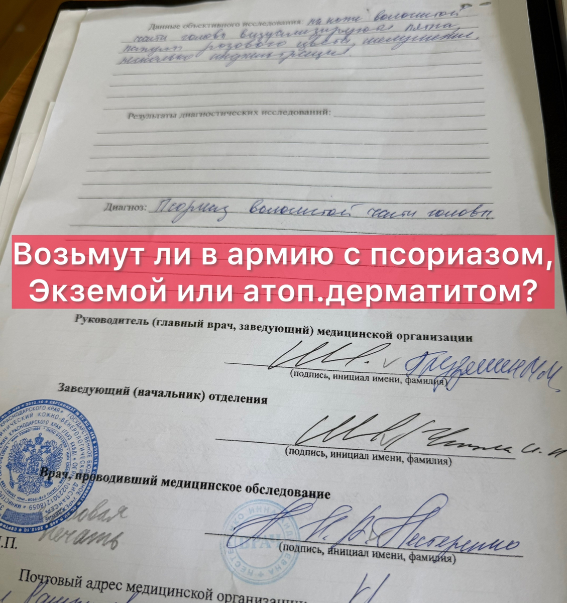 Стоит отметить, что кожные заболевания одни из самых трудоемких для подтверждения в едином пункте призыва и первоначальная главная задача получить направления для дополнительного обследования в КВД, для подтверждения заболевания и заполнения медицинского заключения.