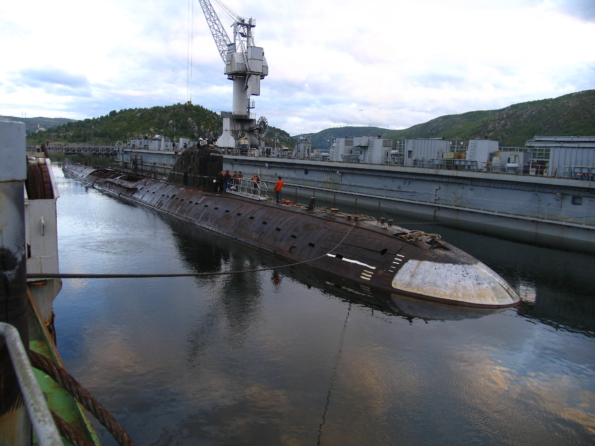 Больше недели длилась подготовка к постановке субмарины в специализированный док «Свияга», прибывший на «Нерпу» для транспортировки «Ленинского комсомола» в Санкт-Петербург. Корабелы «Нерпы» демонтировали гидроакустический комплекс и кормовой вертикальный стабилизатор. Чтобы обеспечить остойчивость корабля во время движения, были смонтированы подкрепления корпуса в районе установки бортовых упоров.