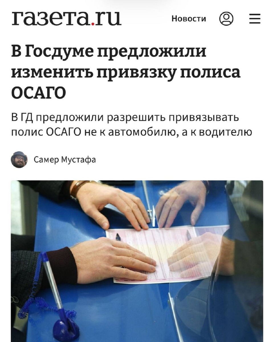 🤩В Госдуме предложили изменить привязку ОСАГО — его хотят прикреплять не к автомобилю, а к водителю, чтобы полис работал независимо от
