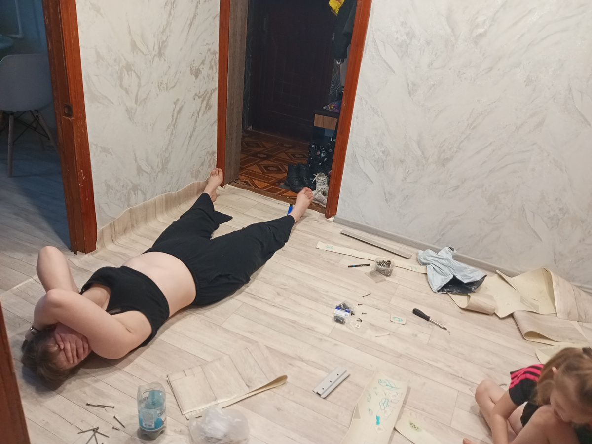Купили линолеум . Хотелось бы ламинат, но увы😔. Может быть когда-нибудь ....
