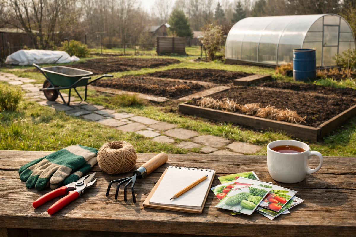 Очень полезный момент. Посмотреть не только на подоконник дома, но и на дачу честно: сколько у вас реально места, какие грядки готовы, где будет томат, где зелень, где цветы. Иногда это спасает от классической весенней ошибки — вырастить 48 кустов на участок, который морально готов к 19.