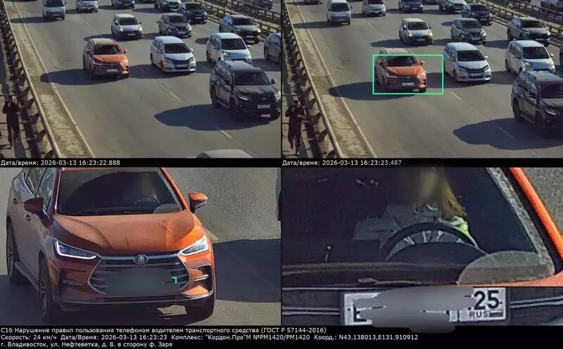 В соцсетях обсуждают инцидент во Владивостоке: женщина, проехавшая на кроссовере под недавно установленной камерой, «попала» на штраф за телефон за рулем, хотя никакого телефона у нее в руке не было, это подтверждают снимки с камер. Источник со ссылкой на Telegram-канал «Город В | Владивосток» отмечает, что телефон на фотографиях есть у прохожего, идущего по обочине трассы – и якобы именно это стало камнем преткновения. Сообщается, что женщина поначалу оплатила штраф 1500 рублей, не дождавшись загрузки приложенных к постановлению фотографий – а когда разглядела снимки, сделала вывод, что система ошибочно «приписала» телефон в руке ей, и решила обжаловать штраф. Пока неясно, будет ли пересмотр постановления, но источник предполагает, что дело может оказаться гораздо проще: никакой привязки к телефону в данном случае нет, речь про непристегнутый ремень, наказание за который тоже составляет 1500 рублей.