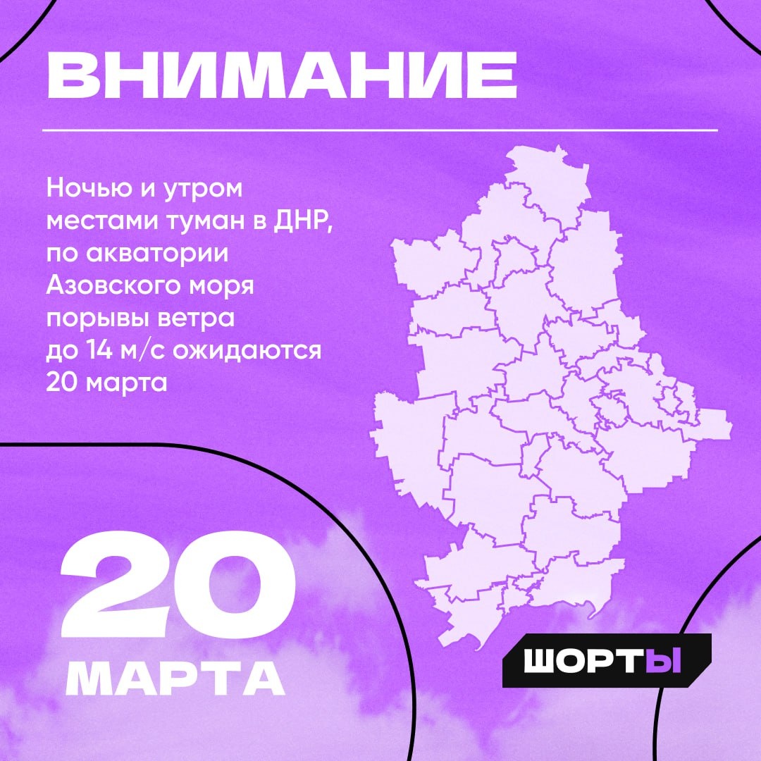 Ночью и утром местами туман в ДНР, по акватории Азовского моря порывы ветра до 14 м/с ожидаются 20 марта.