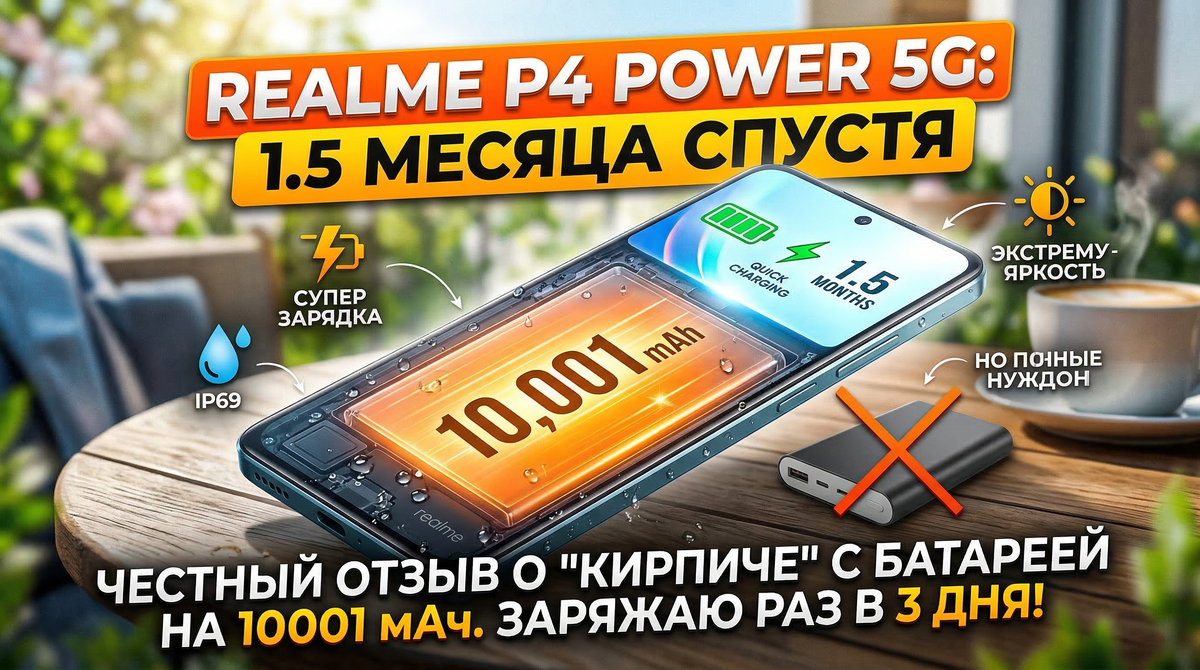 Помните мой первый обзор, который я делал сразу после покупки Realme P4 Power 5G? Тогда я был в восторге от цифр в характеристиках, но, как мы знаем, реальная жизнь и рекламные буклеты — вещи разные. Спустя полтора месяца использования «эффект новизны» прошел, и я готов рассказать, как этот смартфон показывает себя в суровых буднях. Спойлер: 10 001 мАч — это не просто маркетинг, но есть и нюансы. Первое, что меня спрашивали в комментариях: «Он же весит как кирпич, рука не устает?».