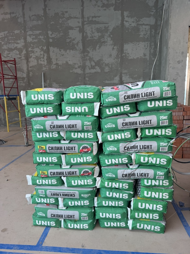Поставка газобетона ISTKULT, легкой штукатурки и грунтовки глубокого проникновения UNIS на объект клиента