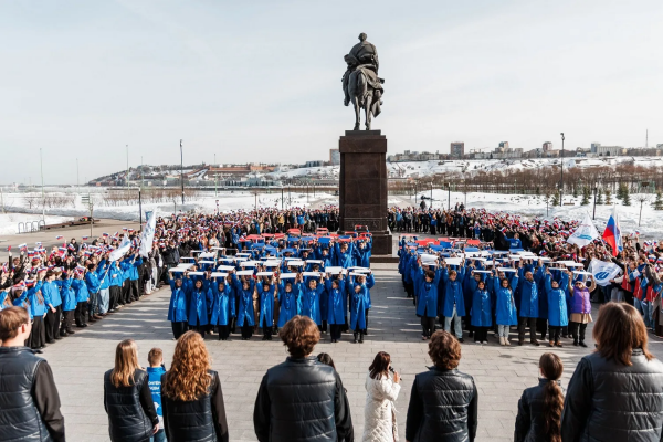 Участники акции у подножия памятника Александру Невскому выстроились в символическую цифру «12» с триколорами в руках и совместно исполнили гимн Российской Федерации. Участниками патриотического флешмоба стали активисты общественной организации «Молодая гвардия «Единой России», активисты движения «Волонтеры Победы», «Движения первых», регионального штаба #МЫВМЕСТЕ, участники образовательной программы «Герои. Нижегородская область», представители молодежных организаций региона, школьники и студенты нижегородских вузов и колледжей.
